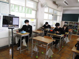 12月20日(火)、大雪によりコミュニティバスが終日運休になったことから、登校できない生徒はオンラインで授業に参加しました。いつもとは違う環境でしたが、教室で授業を受けた生徒もオンラインで授業を受けた生徒も皆真剣に課題に取り組んでいました。 ![]() ![]() ![]() |